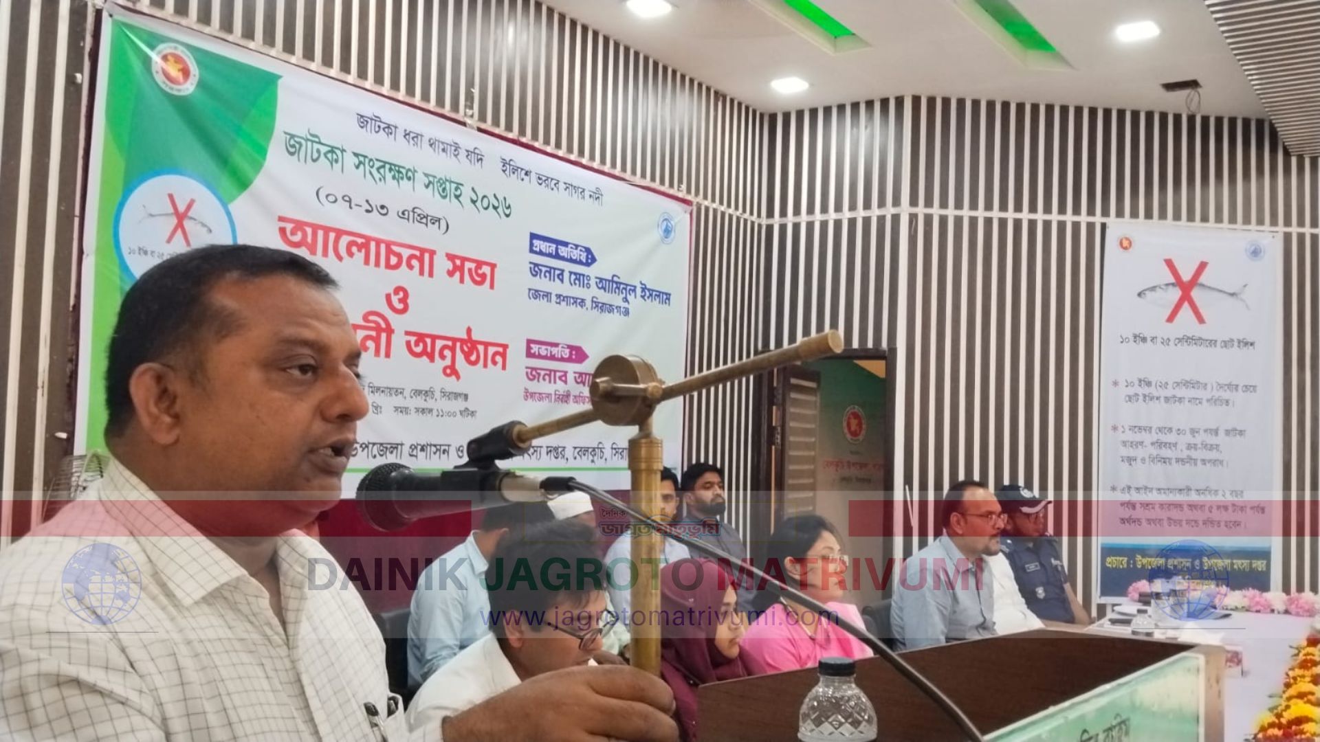 উপজেলা নির্বাহী কর্মকর্তা (ইউএনও) আফরিন জাহানের সভাপতিত্বে অনুষ্ঠানে প্রধান অতিথি হিসেবে উপস্থিত ছিলেন সিরাজগঞ্জের জেলা প্রশাসক আমিনুল ইসলাম। তিনি তাঁর বক্তব্যে বলেন, ইলিশ আমাদের অর্থনীতি ও ঐতিহ্যের অবিচ্ছেদ্য অংশ। তাই জাটকা সংরক্ষণে সবাইকে সচেতন হওয়ার পাশাপাশি প্রচলিত আইন মেনে চলতে হবে।